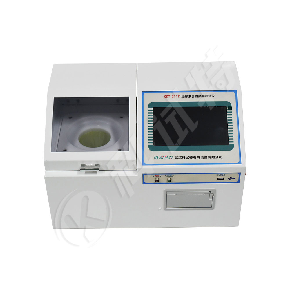 KST-211D测试仪用于绝缘油等液体绝缘介质的介质损耗角及体积电阻率测试的一体化结构的高精密仪器。内部集成了介损油杯、温控仪、温度传感器、介损测试电桥、交流试验电源、标准电容器、高阻计、直流高压源等主要部件。其中加热部分采用了当前最为先进的高频感应加热方式,该加热方式具备油杯与加热体非接触、加热均匀、速度快、控制方便等优点。内部标准电容器为SF6充气三极式电容,该电容的介损及电容量不受环境温度、湿度等影响,保证仪器长时间使用后仍然精度一致。