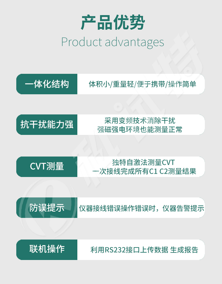 7、设CVT测试功能,可实现CVT的自激法测试,无需外置附件,只需一次测量,C1C2的电容和介损全部测出。