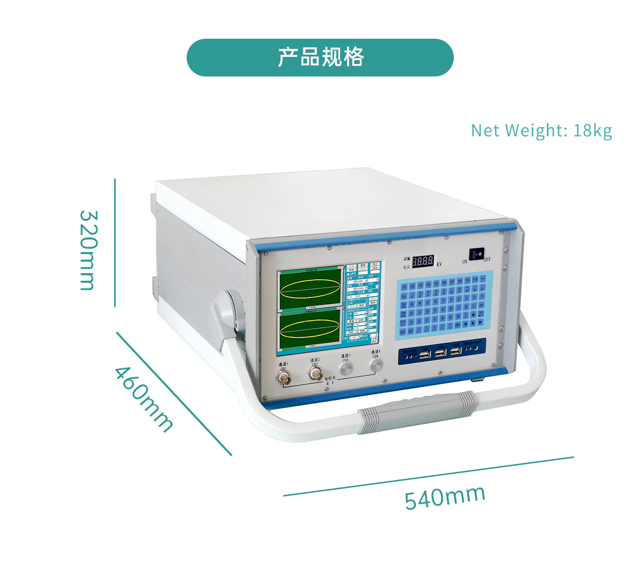 5. 便携移动:适合在环境复杂的现场移动使用。显示屏为高分辨率触摸屏,方便现场操作使用。