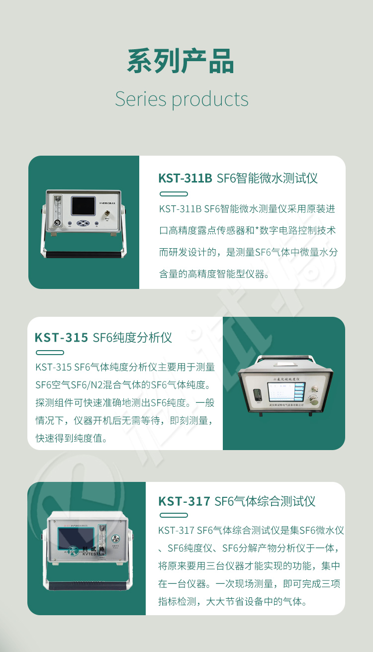 KST-316D测试仪集SO2、H2S、CO、露点及纯度测量功能于一体,将原来要用5台仪器才能实现的功能集中在一台仪器。一次现场测量,即可完成两项指标检测,大大节省设备中的气体,一次测量节省2/3气体用量,同时减少用户的工作量,提高了工作效率。