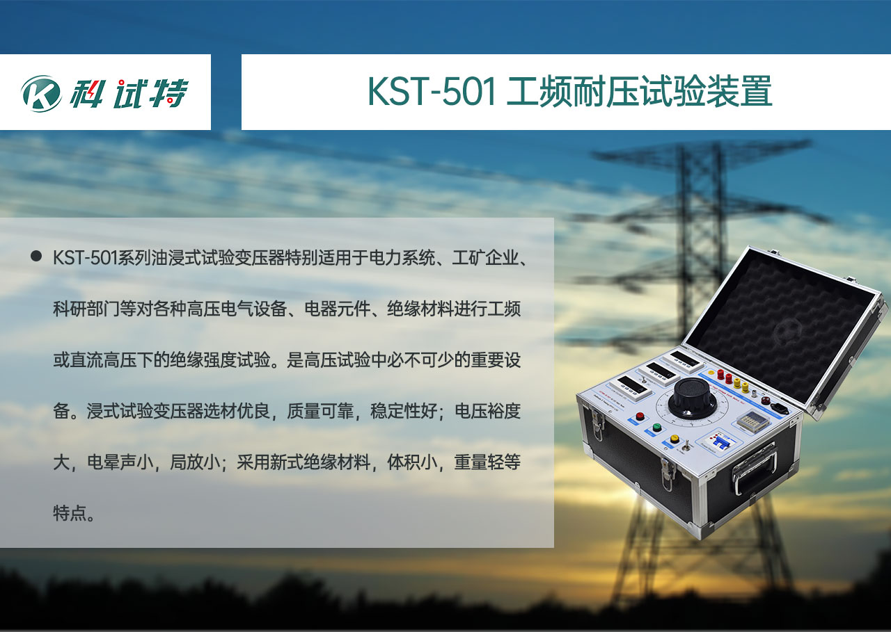 KST-501A系列油浸式试验变压器特别适用于电力系统、工矿企业、科研部门等对各种高压电气设备、电器元件、绝缘材料进行工频或直流高压下的绝缘强度试验。是高压试验中必不可少的重要设备。