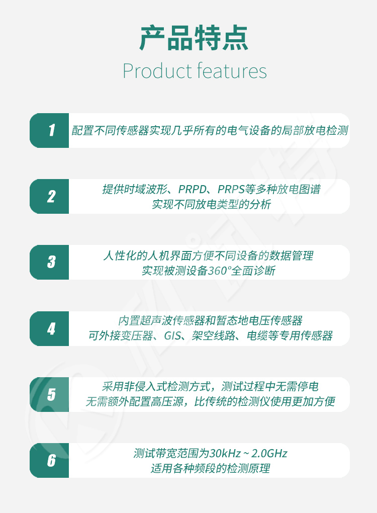 1、配置不同传感器实现几乎所有的电气设备的局部放电检测;