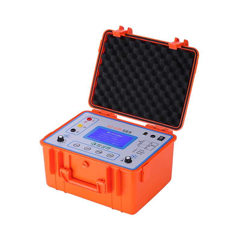 我公司生产的KST-430B数字兆欧表由中大规模集成电路组成。本表输出功率大,短路电流值高,输出电压等级多(有四个电压等级)。工作原理为由机内电池作为电源经DC/DC变换产生的直流高压由E极出经被测试品到达L极,从而产生一个从E到L极的电流,经过I/V变换经除法器完成运算直接将被测的绝缘电阻值由LCD显示出来。