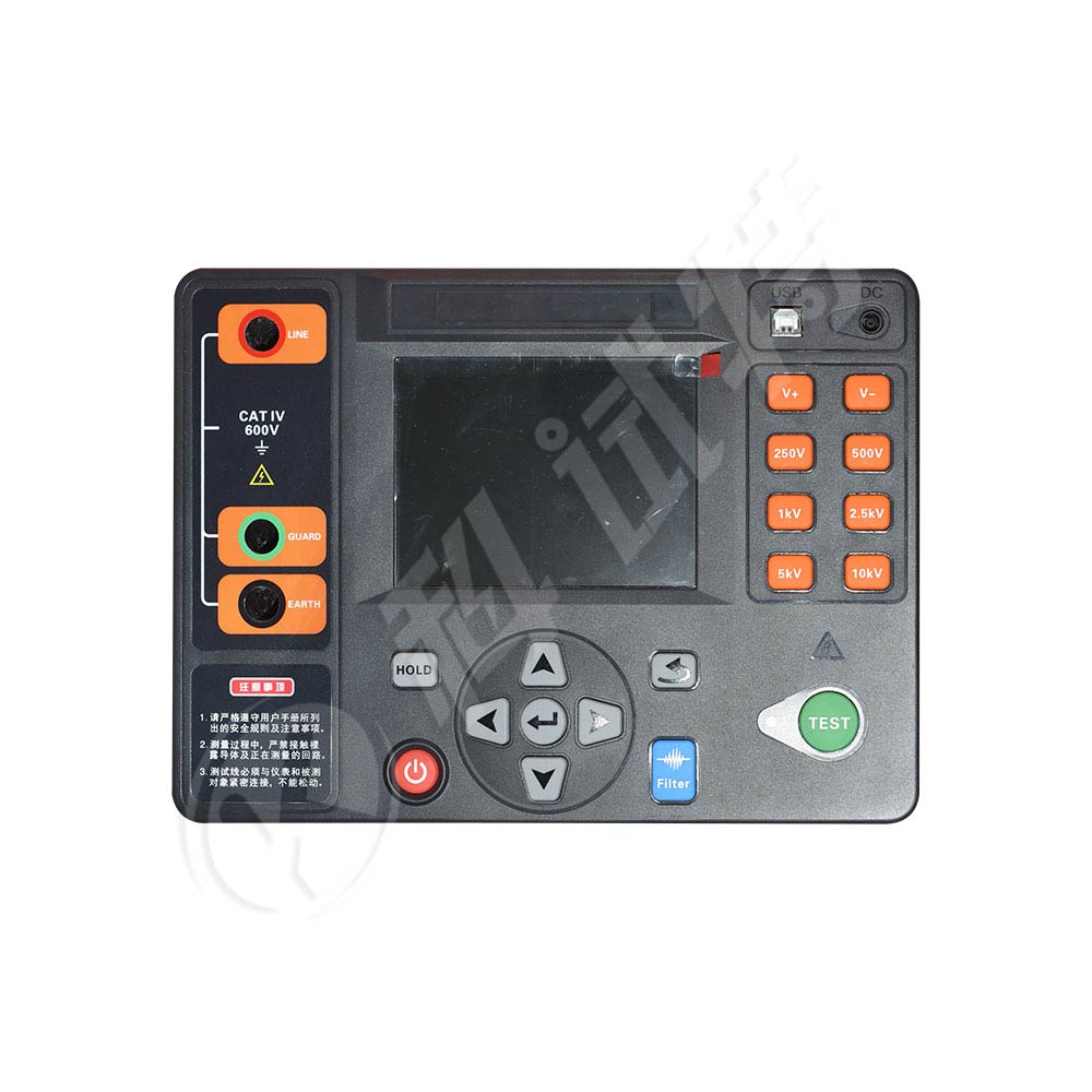 KST-430E 绝缘电阻测试仪,又名高压绝缘电阻测试仪、兆欧表、高压兆欧表、数字式高压兆欧表等,通常用于试验室或现场做绝缘测试。本仪表采用箱式设计,箱体及面板采用塑料模具注塑成型,确保高绝缘性,5.6寸彩色LCD屏,中英文双语操作界面,简洁的按键设计让用户轻松掌握仪器的使用,同时还具有数据存储、查阅、保持、传输等功能。本仪表的测量分辨率高,操作便捷,携带方便,准确、可靠、性能稳定,抗干扰能力强,且具有防震、防尘、防潮结构,是电力、通讯、建筑、气象、机房、油田、院校、工矿企业等领域常用的仪表。