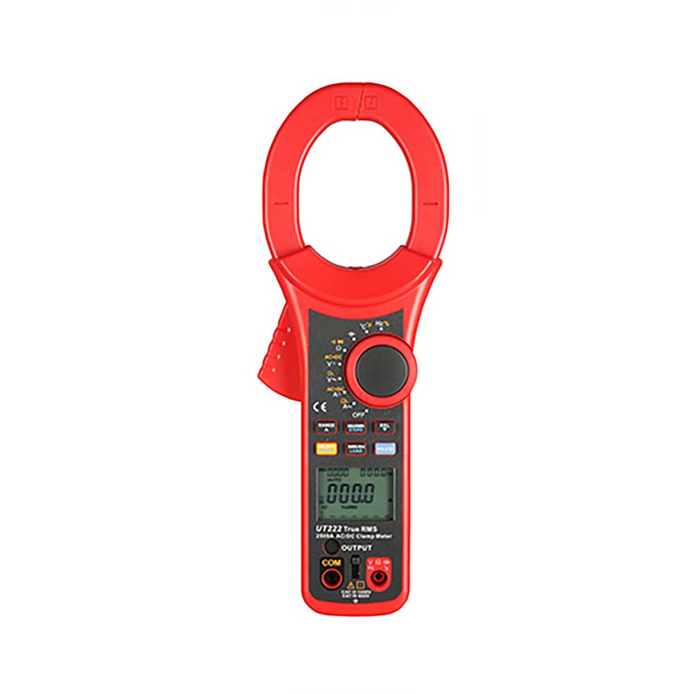 UT222是一款适合测量最大电流(2500A)的数字钳形万用表。较大的钳头(63mm)开口尺寸可以轻松应对强电流、高电压场合中常见的粗导线。该系列产品可选功能有真有效值、浪涌电流,低通滤波,数据储存,电流输出功能,AC+DC电流/电压等。并且符合双重绝缘和CATIV 600V的安全等级认证,在冲击保护有更大提高,使之成为一款性能优越且安全耐用的多功能钳形表。适合工业电力系统应用,是电力技术人员维修、维护的理想工具。