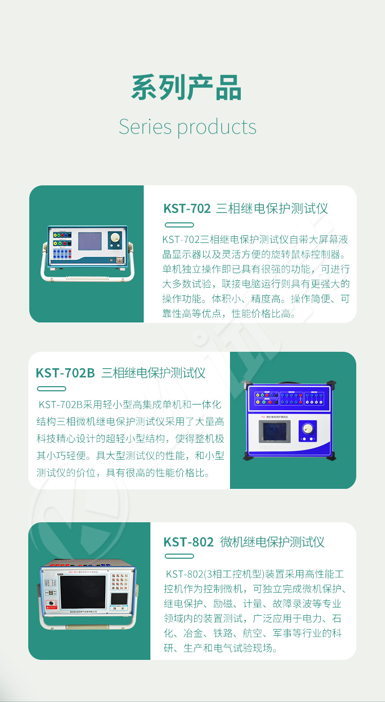 KST-1600微机继电保护测试仪是保证电力系统安全可靠运行的一种重要测试工具。随着计算机技术、微电子技术、电力电子技术的飞速发展,应用最新技术成果不断推出新型高性能继电保护测试装置是技术进步的必然趋势。KST-1600微机继电保护测试仪参照了原电力部颁发的《微机继电保护试验装置技术条件》的基础上,认真总结前几代产品的开发、生产经验,并采用现代最新数字技术、高精密电子器件、微机系统及新线路、新结构研制而出。可独立完成微机保护、继电保护、励磁、计量、故障录波等专业领域内的装置测试,广泛应用于电力、石化、冶金、铁路、航空、军事等行业的科研、生产和电气试验现场。