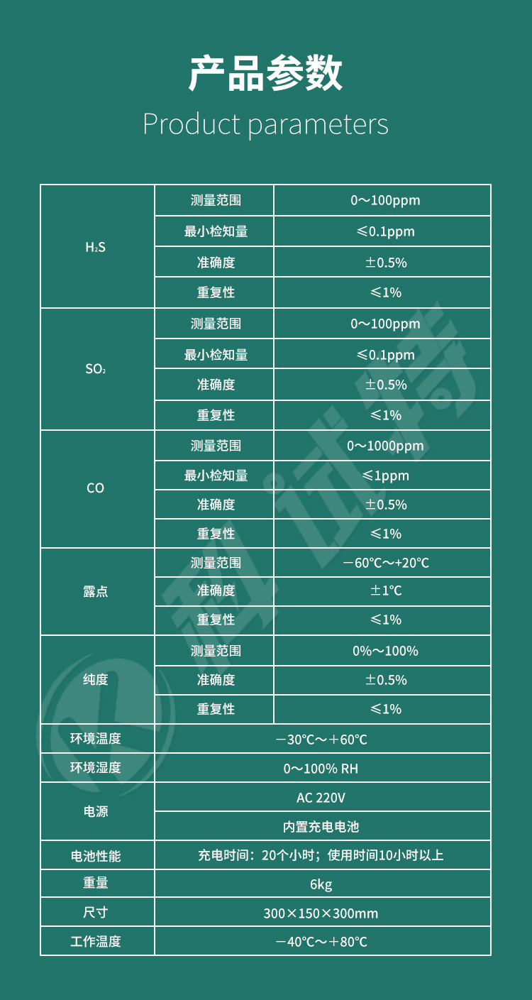 4、显示清晰:4.3寸高清触摸屏,测量界面直接显示SO2、H2S、CO、露点、纯度及时间日期