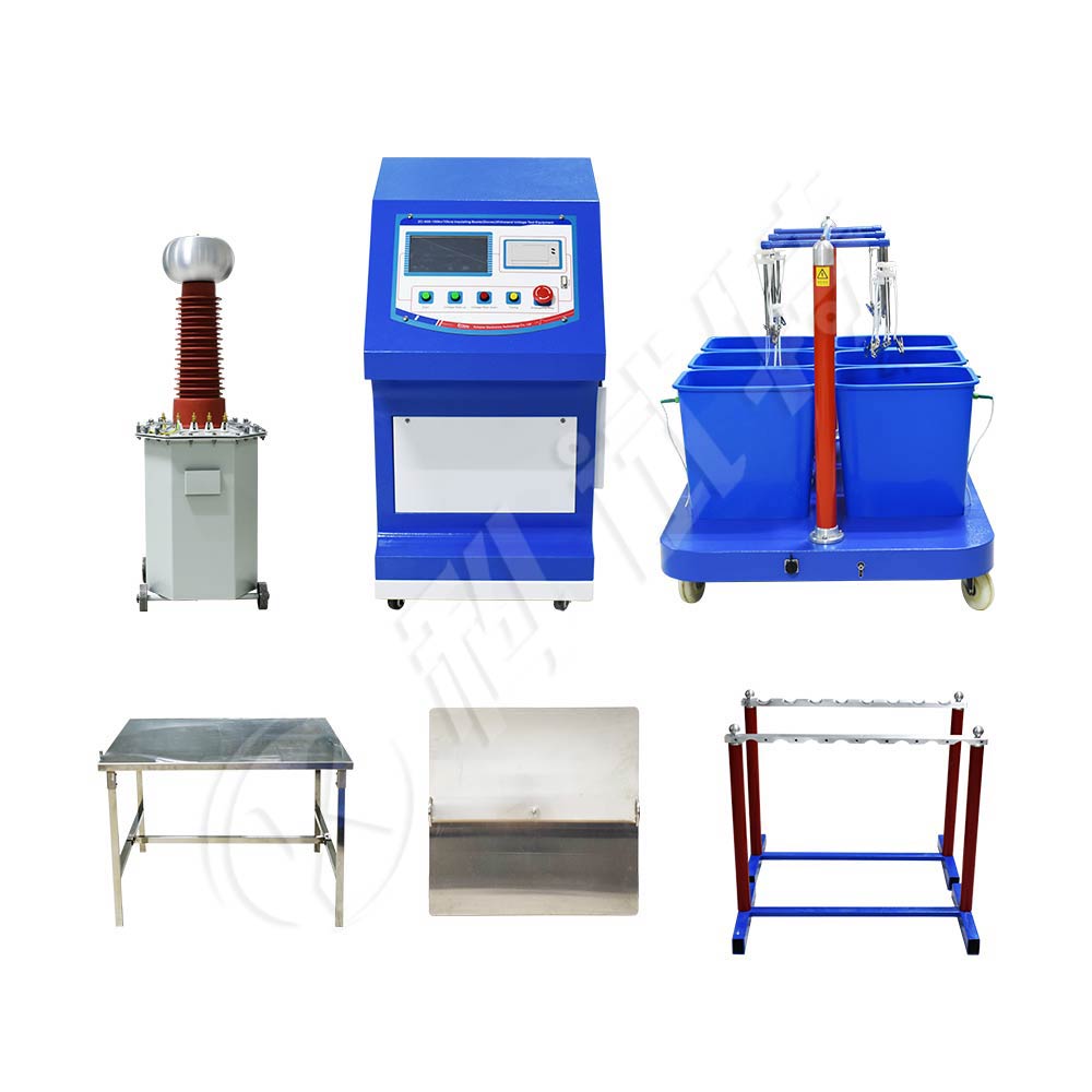 4、输出电压大测量方便灵活:装置可自定义输出1~30kV的任意电压,泄漏电流门限值可以1~20mA任意设置,试验时间可以1~10min任意设置,同时将常用绝缘设备参数按照国标整合成模块,试验方便快捷;