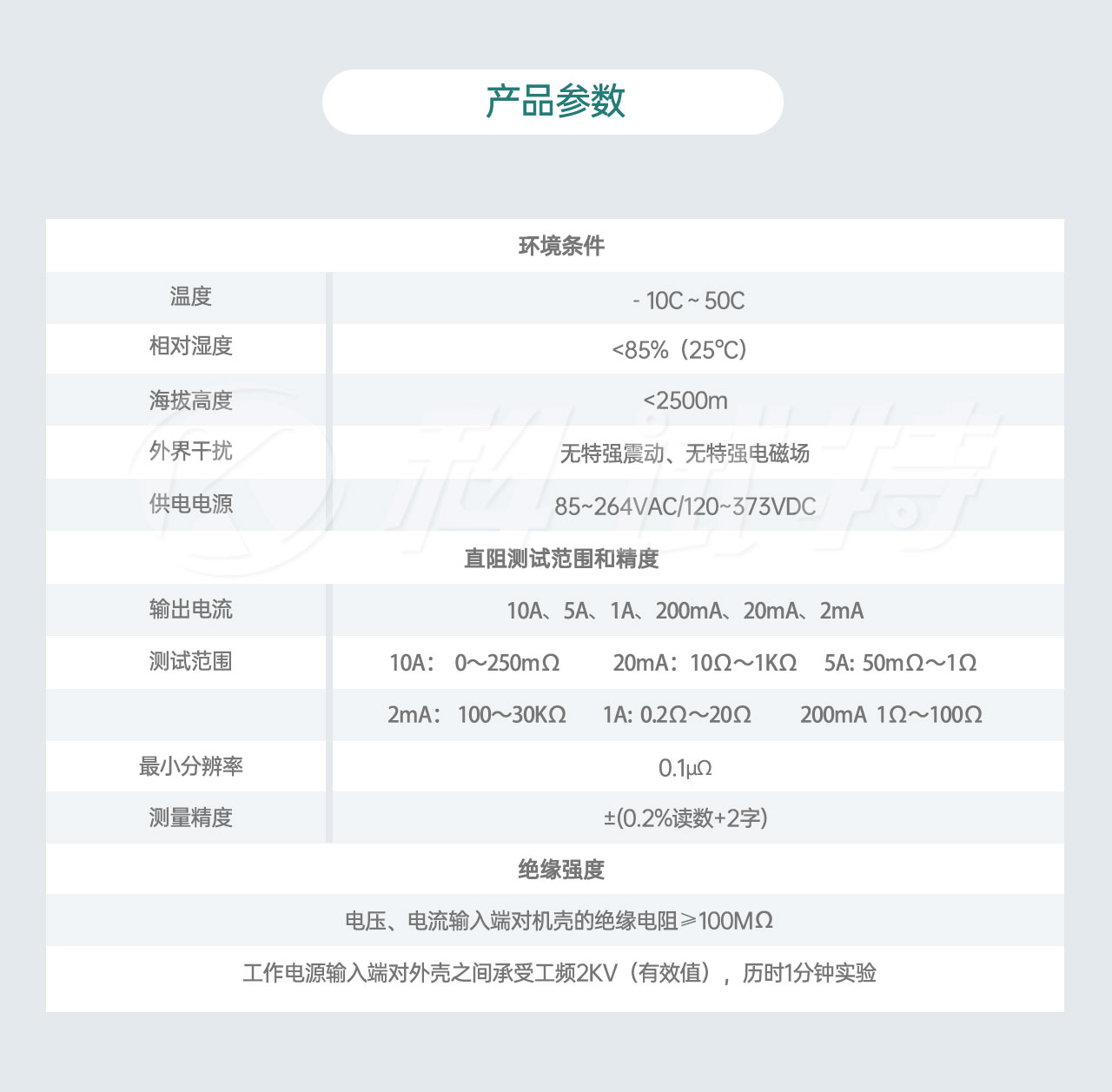 | 最小分辨率 | 0.1μΩ |
