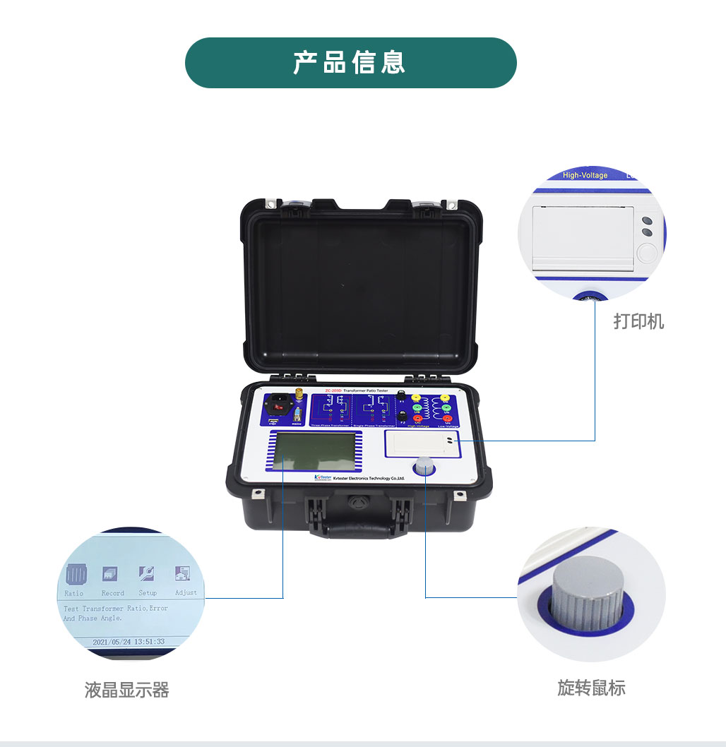 3、精确快速测试电流互感器(CT)和电压互感器(PT)的匝比,匝比误差和相位差。