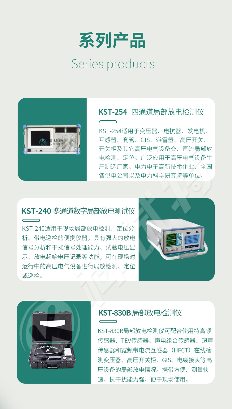 1、局部放电强度检测:通过测量 1 个工频周期内的放电信号,根据放电脉冲序列中Z大值(dB) 来表征局部放电的强度。