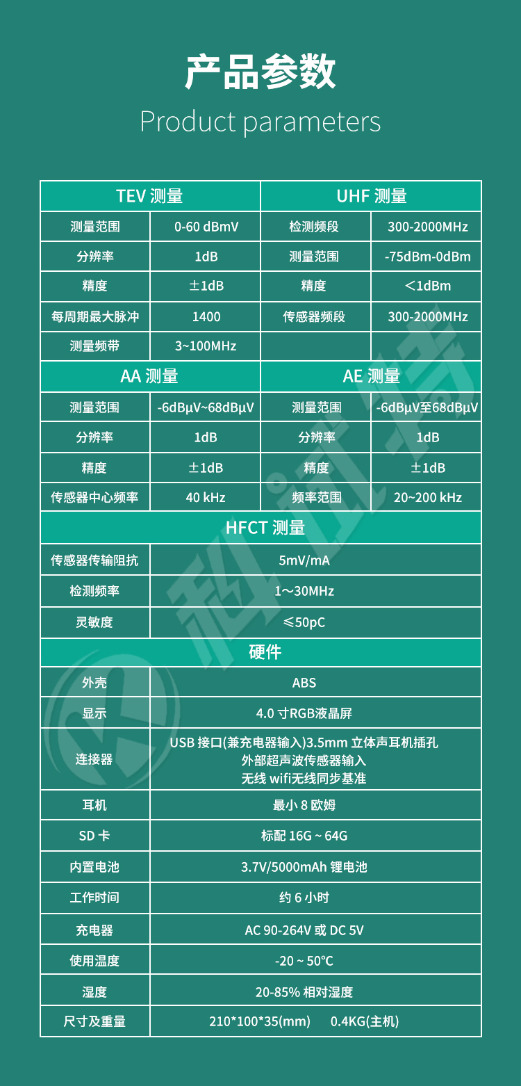 5、测试带宽范围为 30kHz ~ 2.0GHz,适用各种频段的检测原理;