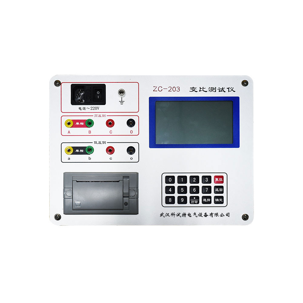 ZC-203YZ变压器变比测试仪采用32位ARM内核作为处理的核心,对整机进行控制,实现了单相或三相变压器的变比测量的一次完成。仪器的操作全部用中文菜单显示,简单直观。测试结果准确可靠,并且能够存储和打印测试结果。仪器抗干扰能力强,能够满足各种大中小型变压器变比测试的需要。
