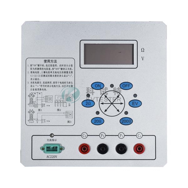 4. 本接地电阻表不需人工调节平衡,3(1/2)位LCD显示,除测地电阻外,还可测低电阻导体电阻、土壤电阻率以及交流地电压。如若测试回路不通表头显示“1”代表溢出,符合常规测量习惯。