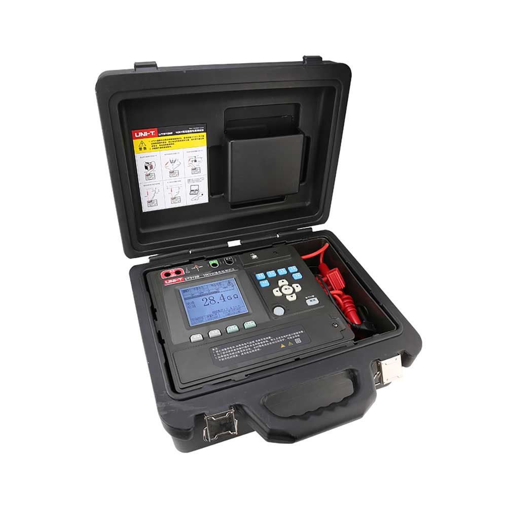 UT515B 10kV数字式高压绝缘电阻测试仪是一款智能型绝缘测试仪器,整机电路设计采用微机技术设计为核心,以大规模集成电路和数字电路相结合,配合强大的测量和数据处理软件,完成绝缘电阻、电压等参数测量,性能良好,操作简单。具有500V,1000V,2500,5000V,10000V量程;各量程的输出设置10%步进微调电压,测试数据可保存于设备内存中,通过PC软件进行下载或实时传送至PC端进行数据分析;全按键操作,电子数字式显示,省时省力,一键即可完成测试,引领传统“摇表”进入数字化电子时代。