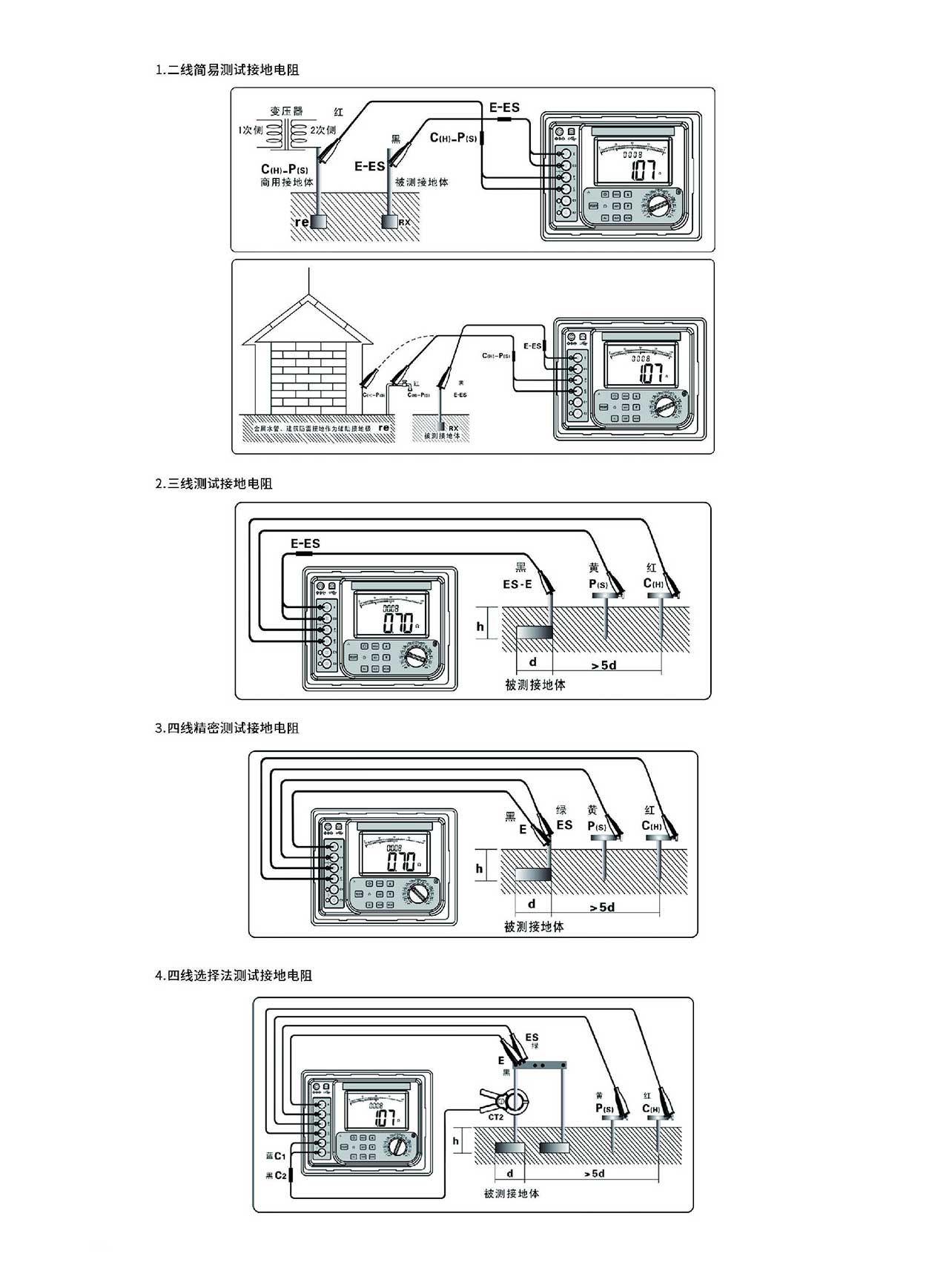 UT575B双钳多功能接地电阻测试仪是一款专为现场测量接地电阻、直流电阻、土壤电阻率、接地电流、接地电压而精心设计制造的高端仪表。仪表采用先进数宇处理技术,具有二线法、三线法、四线法、选择法、双钳法等各种测量方法选择,钳头采用大口径电流钳设计,可测量大尺寸接地引下线的接地电阻值,可灵活测量单点和网状接地等各种复杂接地结构的接地电阻值,测量并联接地系统时无需断开任何并联接地极,极大地望高了测量的方便性,为接地性能测试提供了完美的解决方案,仪表具有存储功能、时钟功能,自动存储含有日期时间的测试结果2000组。并支持安卓系统的蓝牙通讯动能及USB接口,存储数据通过USB接口上传PC机,可以实现历史记录数据读取、查阅、保存、报表、打印等功能,仪表广泛应用于电力、电信、气象、油田、建筑、防雷及工业电气设备等行业。