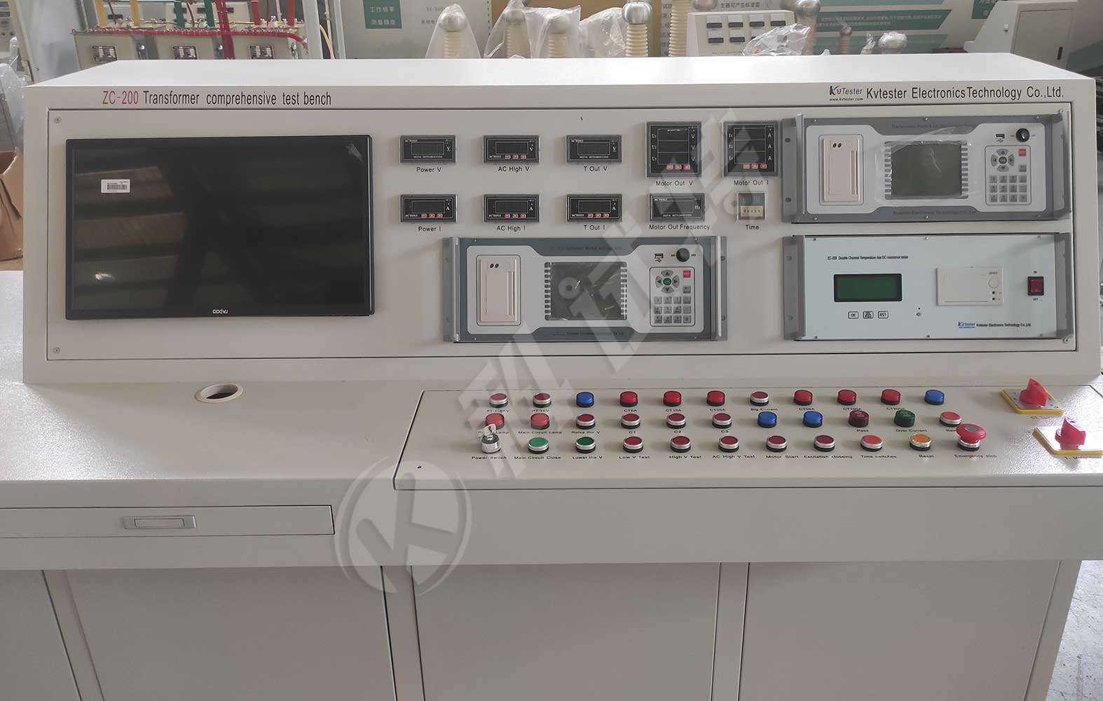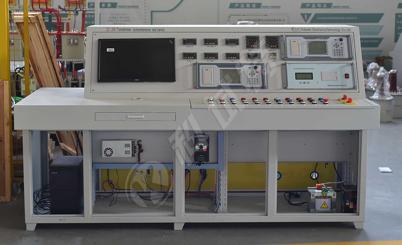 变压器综合试验台符合GB/T476、GB/T5169、GB/4285-1993等相关国家标准。该试验台主要用于测试电力变压器和配电变压器的空载和负载特性,还用于测试变压器的倍频感应和工频耐压。该装置的测量部分由高端单片机控制,数字显示、空载、短路等测试数据由单片机同步采样,避免了传统的电压、电流表和功率表读数测试方法中人工计算造成的误差。本套设备适用于5000kVA/36-10KV及以下容量的三相变压器出厂试验和常规试验的电力变压器生产维护部门。操作简单,测量准确,操作可靠。