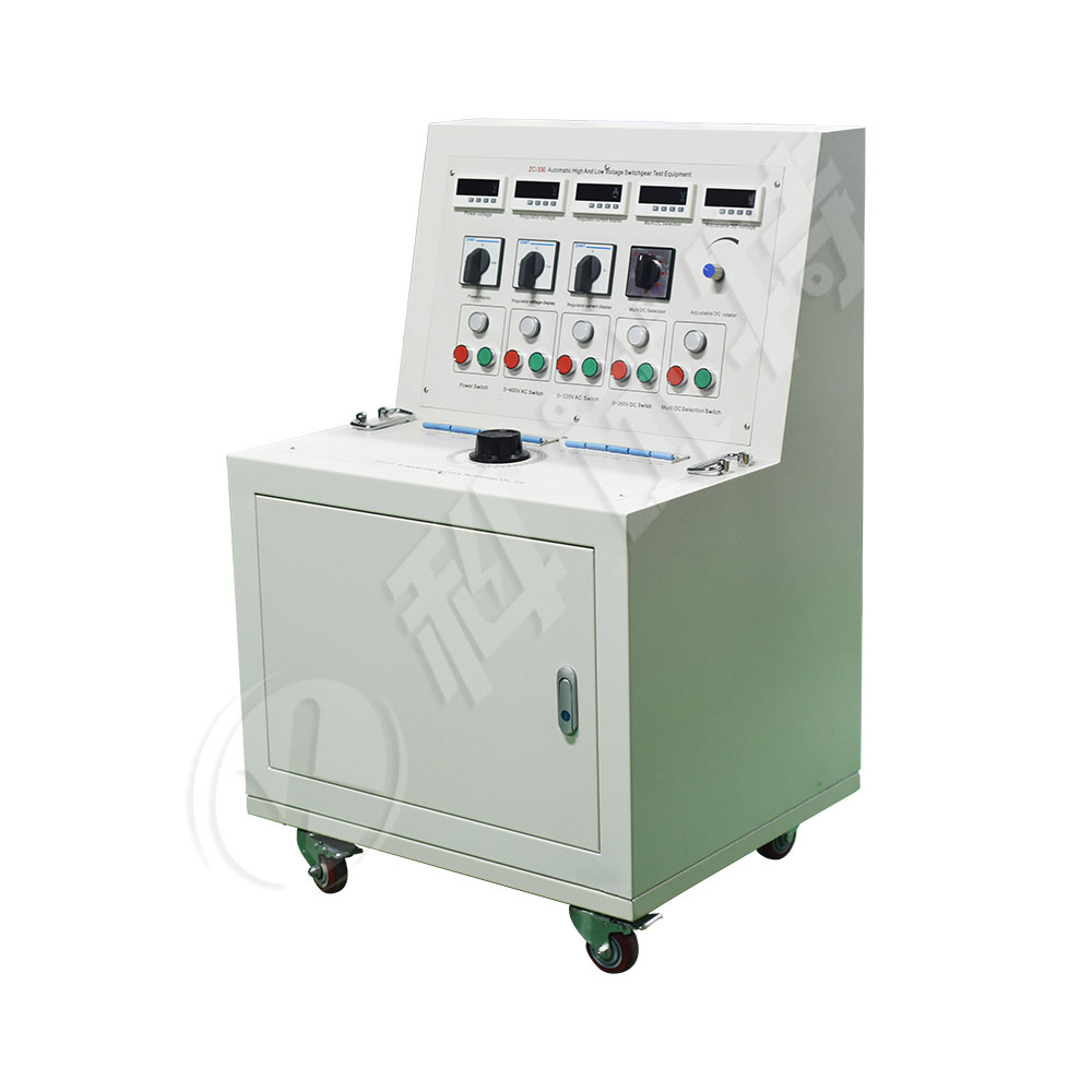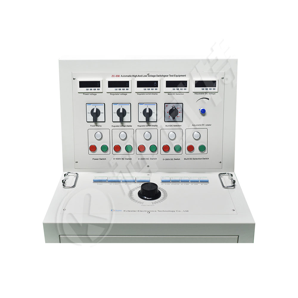 KST-330高低压开关柜通电试验台用于高低压开关柜生产厂家对所生产的高低压开关柜进行出厂前的各项通电试验。高低压开关柜通电试验台能提供各种交、直流电源,便于对开关柜的检测,提高工作效率。